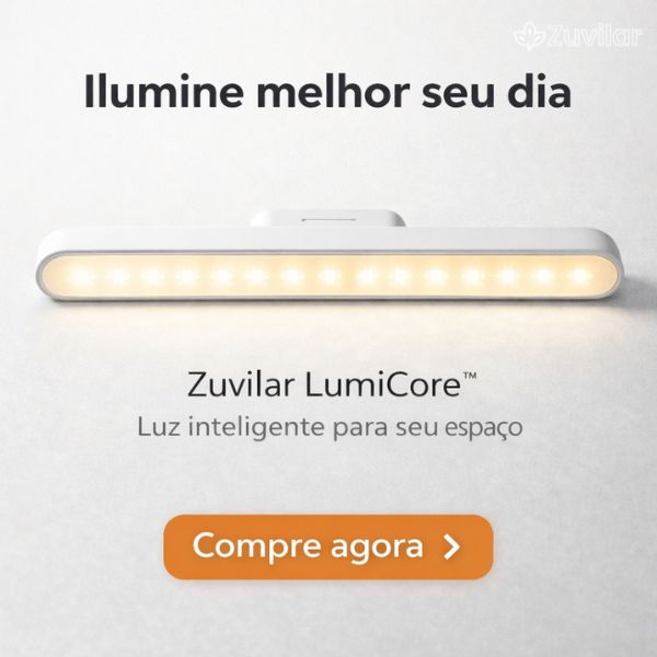 Garanta agora sua Zuvilar LumiCore™ e transforme sua rotina com iluminação inteligente desde o primeiro uso!