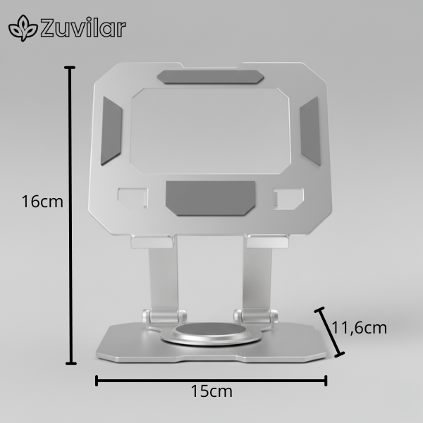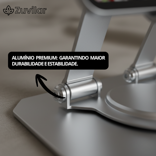 Construído com liga de alumínio reforçada e almofadas premium de silicone, o suporte mantém o tablet firme.